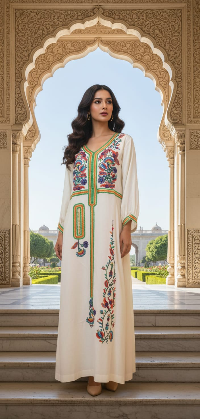 This traditional jalabiya, crafted from high-quality cotton fabric, offers exceptional comfort and breathability. Featuring intricate traditional embroidery, it showcases authentic craftsmanship that honors cultural heritage. Perfect for those seeking both elegance and ease in everyday wear, this garment blends timeless style with durable, natural materials.