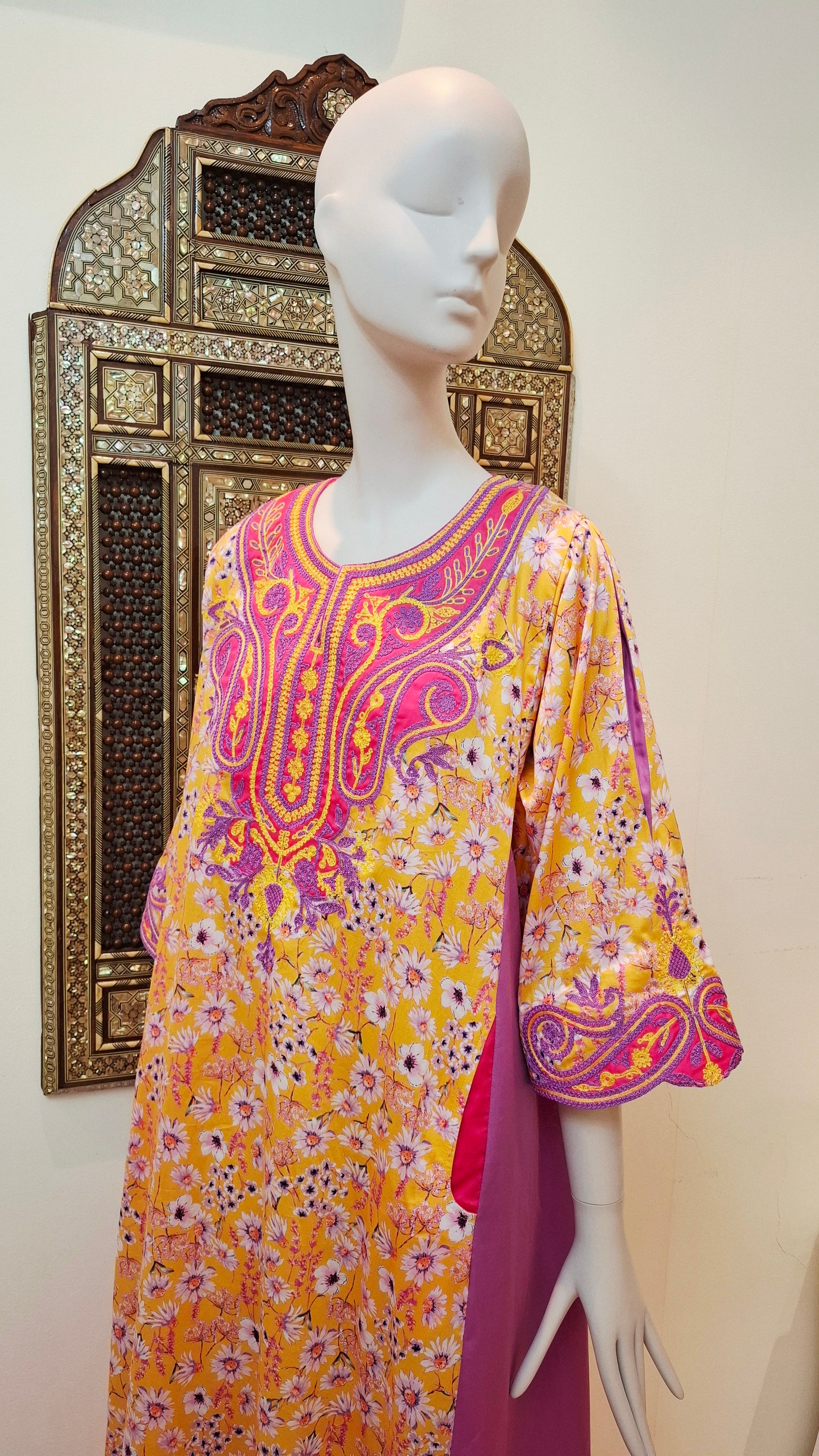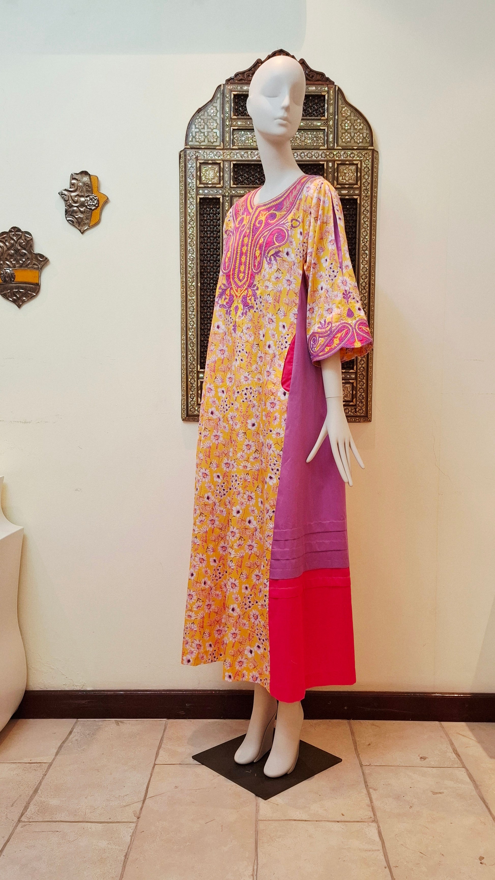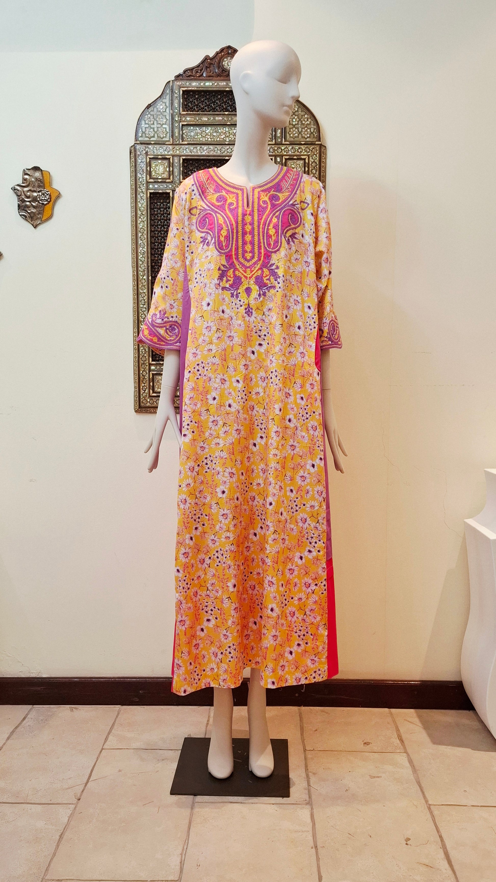 This cotton jalabiya features an elegant fancy cut that enhances its traditional charm. With a length of 58 inches and 3/4 sleeves, it offers a comfortable yet stylish fit. Available in all sizes and customizable on order, it combines versatility with tailored comfort to suit your preferences perfectly