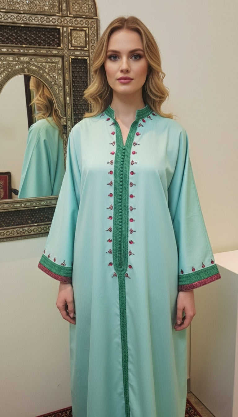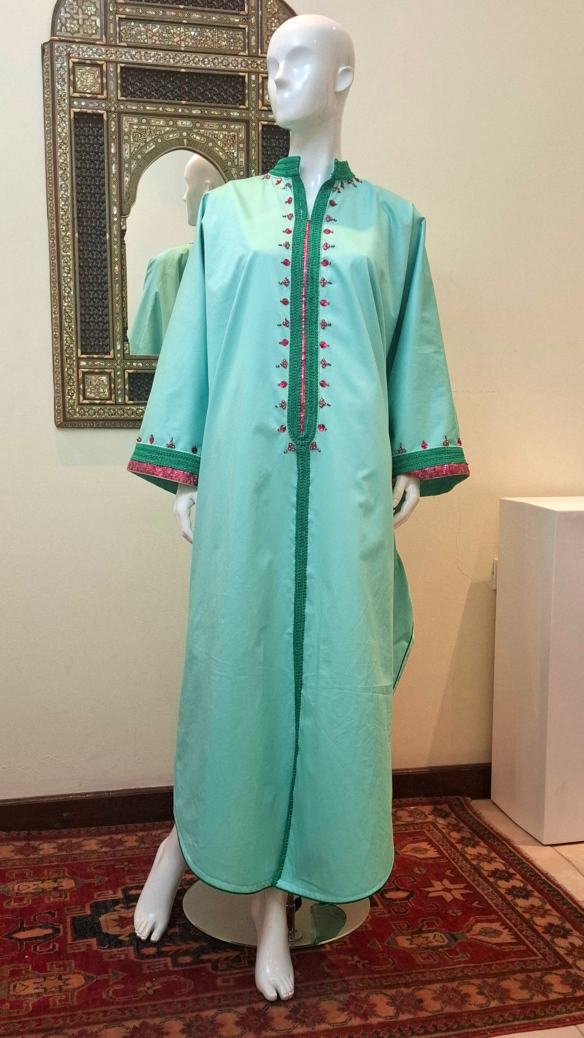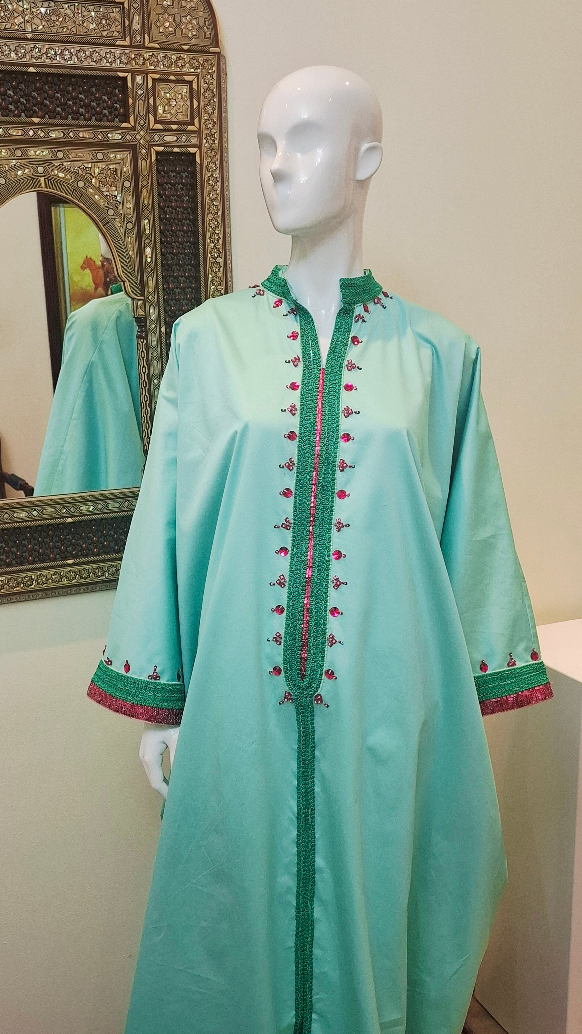 Thick Cotton Febric winter thobe. free size. Moroccan lace with beads hand works.