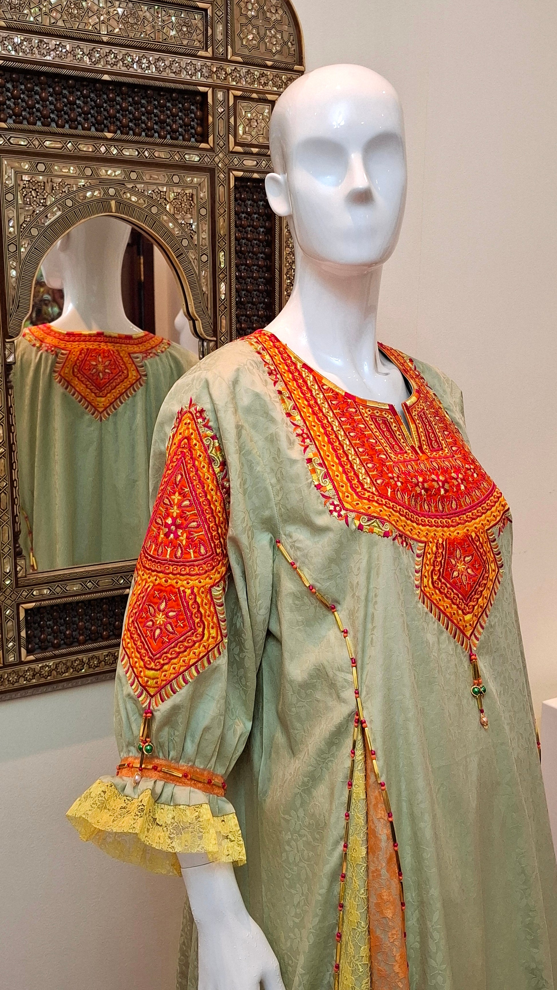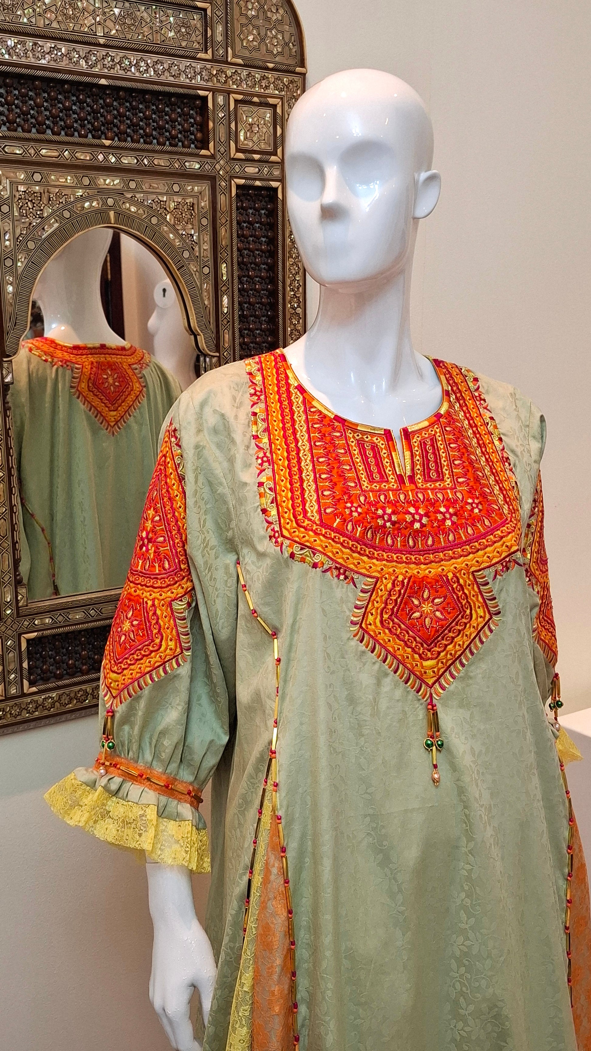 Discover our premium jacquard cotton fabric, adorned with traditional hand-embroidered details and delicate beadwork. Each piece reflects authentic craftsmanship and cultural heritage, offering versatility across all available sizes. Ideal for discerning artisans and designers seeking high-quality textiles with distinctive character and timeless appeal for bespoke creations.